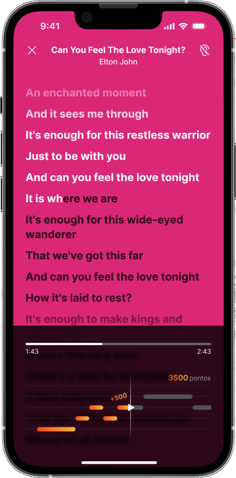 Nunca perca o ritmo com as letras das músicas sincronizadas e exibidas em tempo real. Você também pode ativar a voz original da música para ajudar.